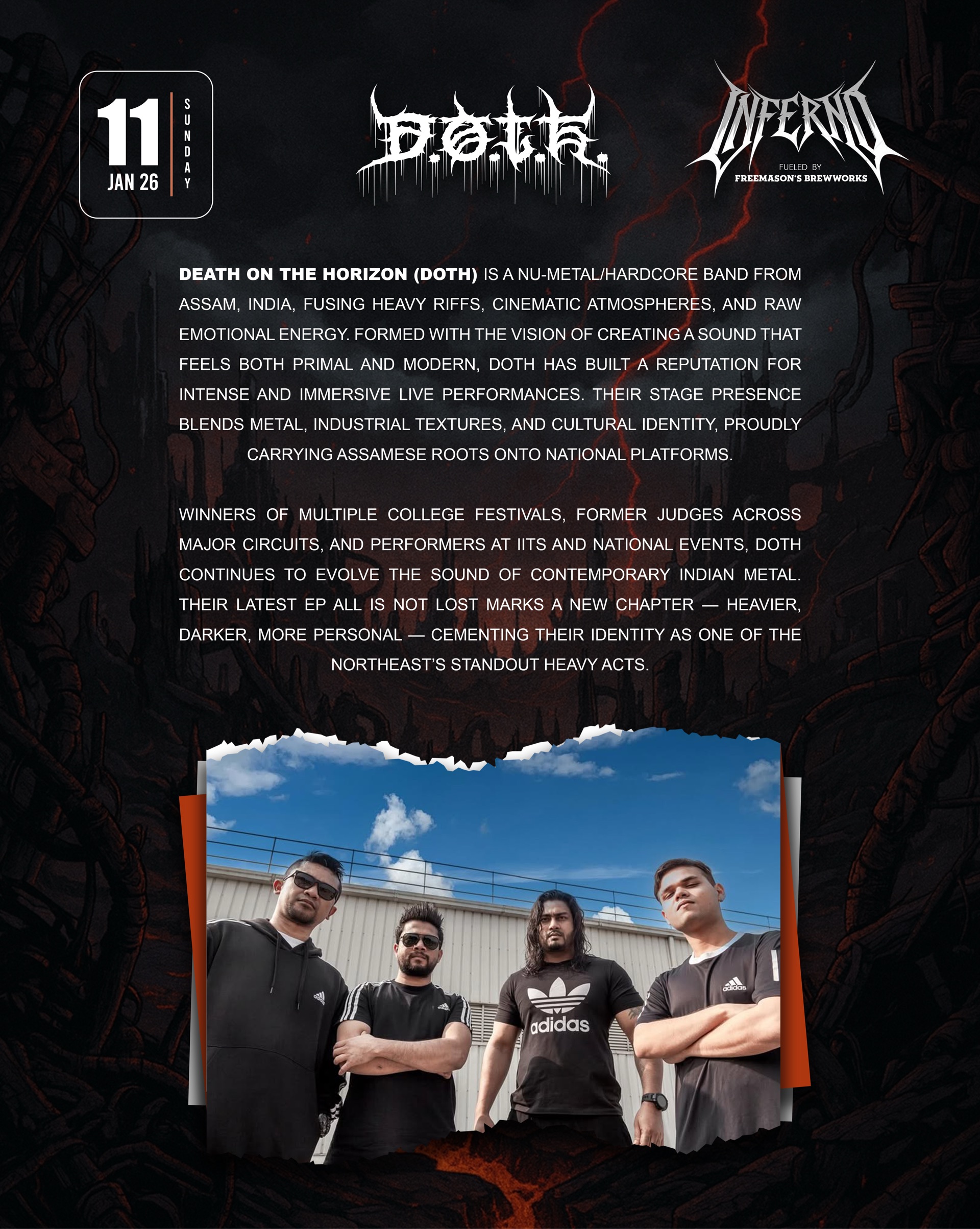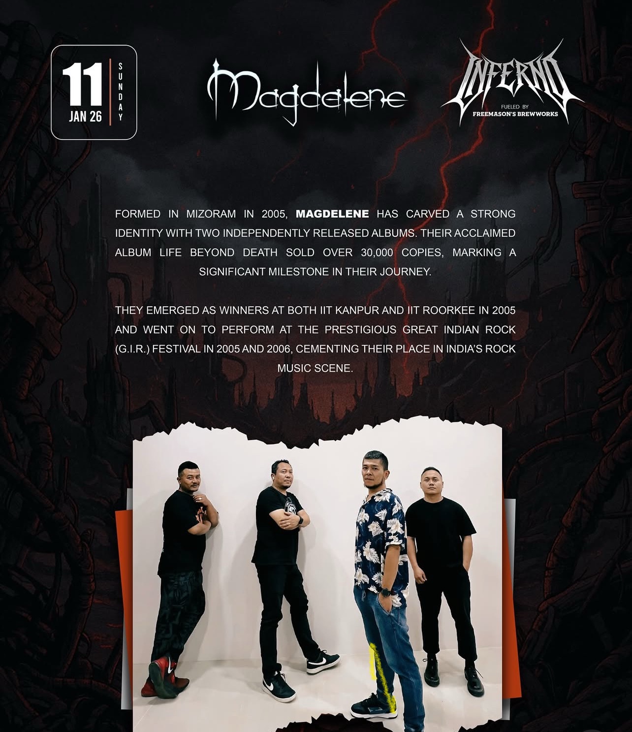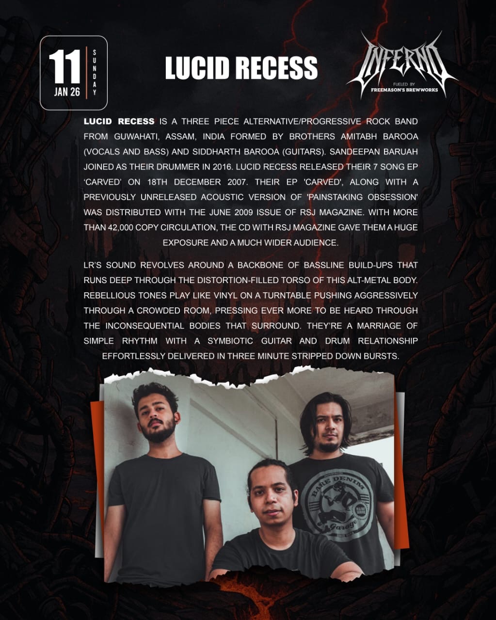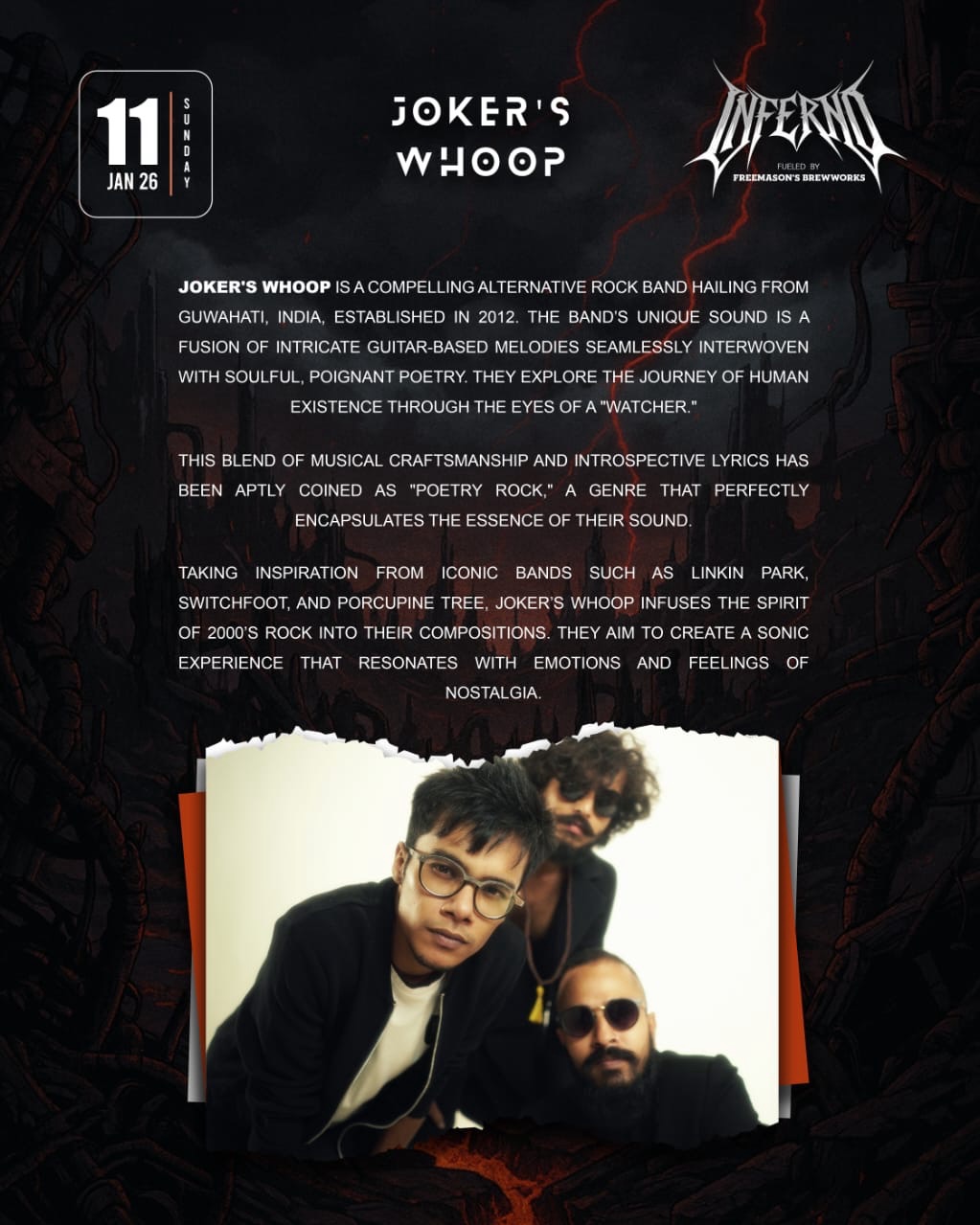 freemasonsbrewworks, rockarolla_india and razr_live come together to present inferno_guwahati — a one-of-a-kind pub fest featuring two stages and 7 of the finest bands from the North East, all in one explosive night of live music.